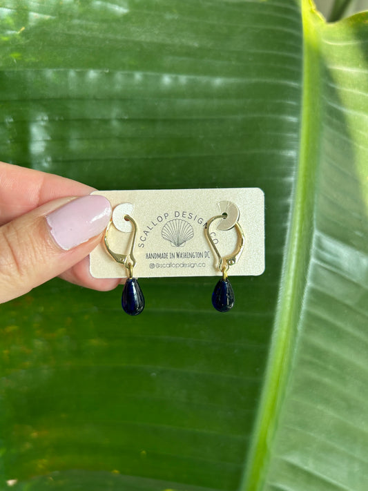 Blue Oval Bead- Upcycled Earrings