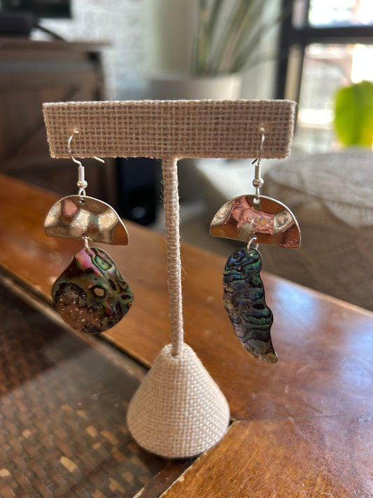 Hammered silver and abalone dangling earrings - Pāua collection