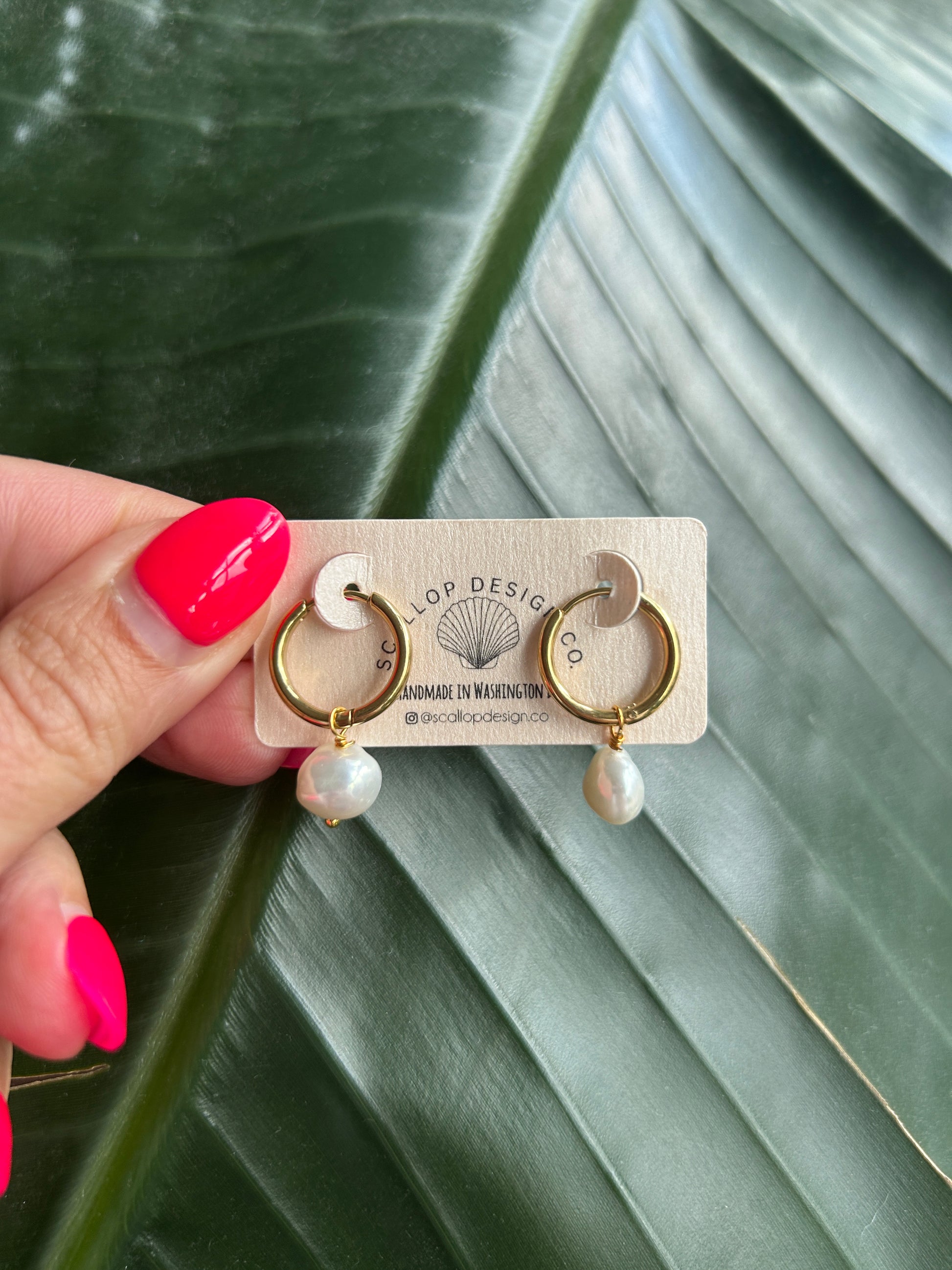 These huggies are perfect for every day wear. The hoops are stainless steel, the material used in earrings for new piercing, and plated with 18k gold. Pool and ocean tested- no tarnish!