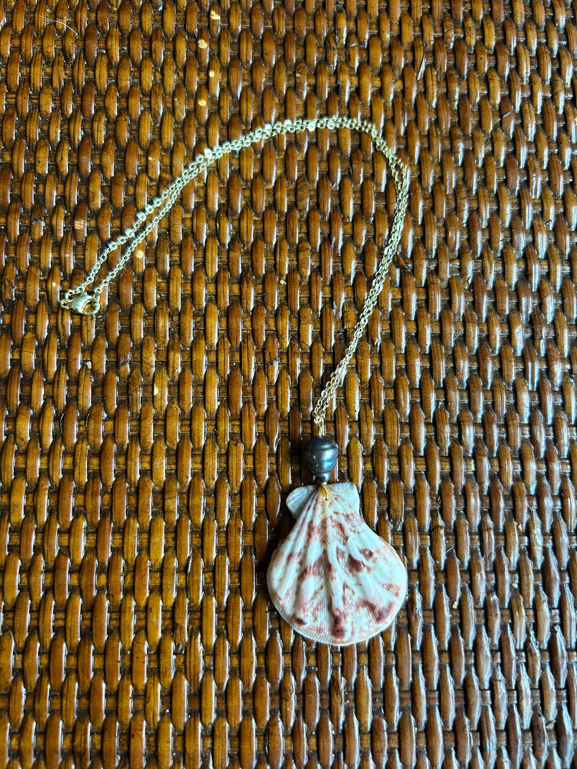 - Scallop Shell (Lion's paw scallop is the pink and white shell)