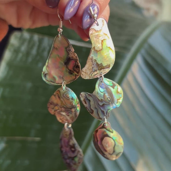 Triple dangling abalone earrings - Pāua collection